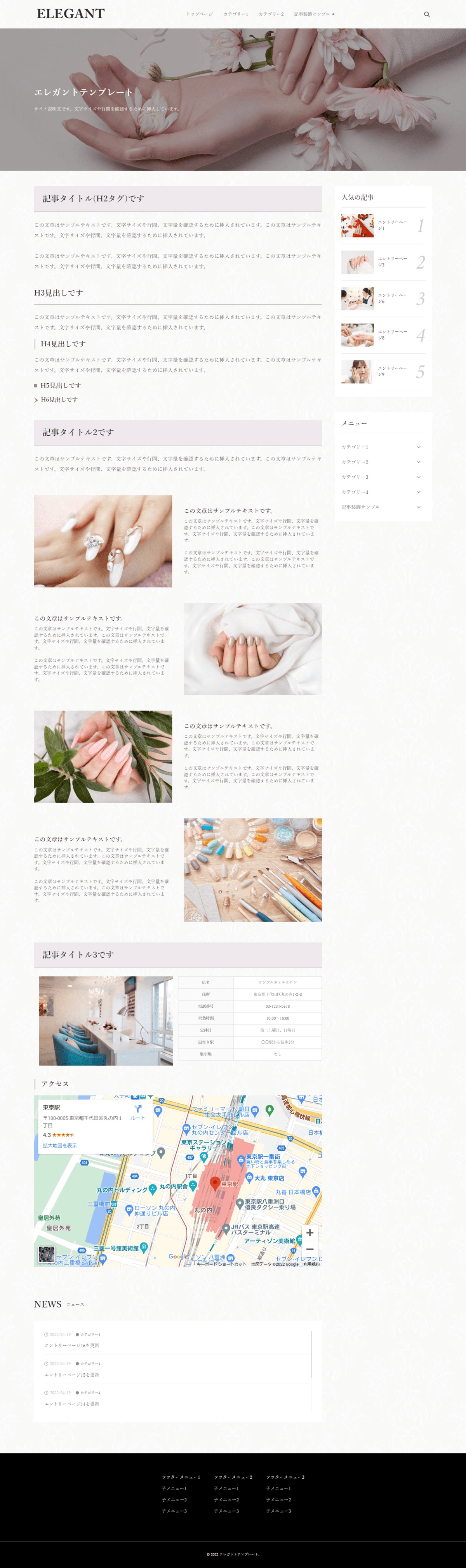 淡い配色に高級感を持たせたエレガントなデザインのテンプレートです。