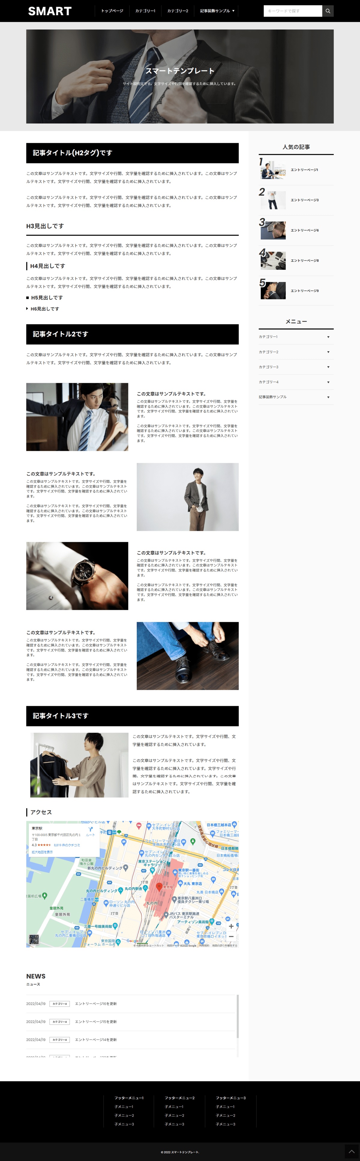訪問者が見やすく、そして綺麗に見えるような構造になっています。